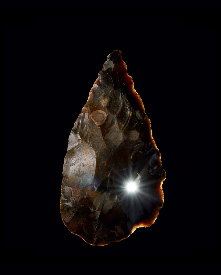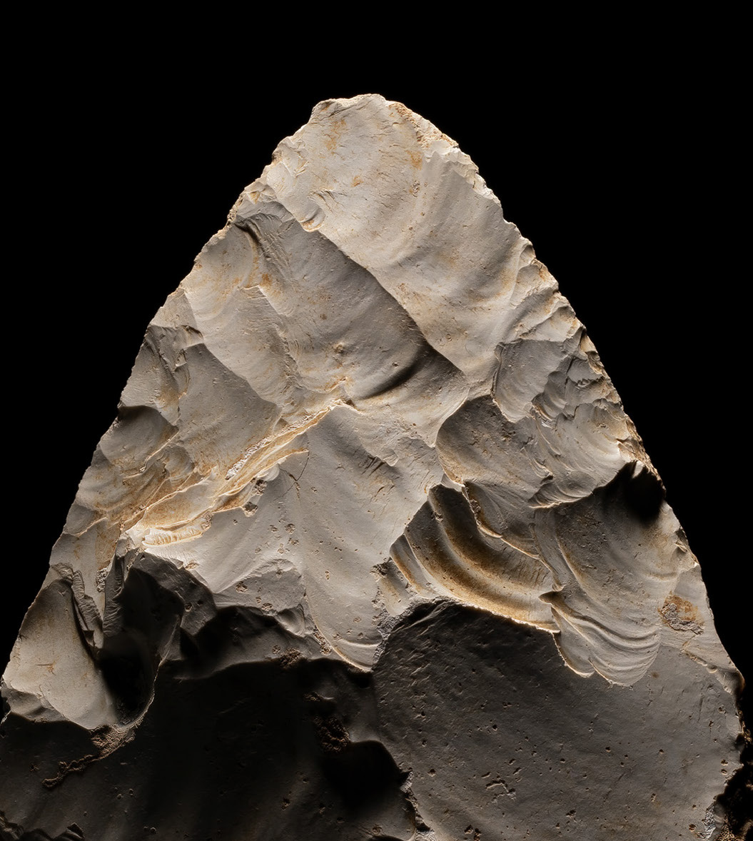 Just as artists distort reality to create perspective, crafting Levallois axes defied intuition, demanding instruction from master to apprentice. First, a core was prepared and struck in cross-section to form pre-determined flakes, which were then reworked. Mastery of this process yielded small, thin, gem-like tools.
