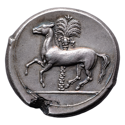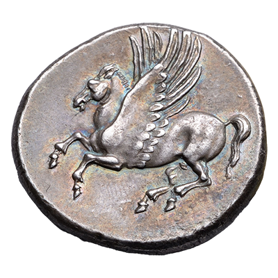 When Timoleon of Corinth took Syracuse in the mid 4th century BC, he brought with him the typical colts (coins showing an image of Pegasus) of his homeland.