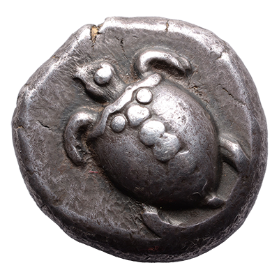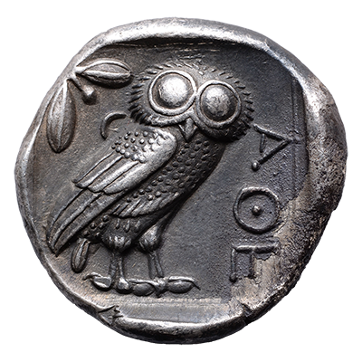 These Athenian coins, struck with silver from Laurium, circulated at the time of the Persian wars and the Athenian golden age.