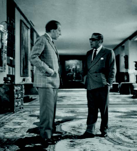 American industrialist and founder of getty oil, Jean Paul Getty (1892-1976) pictured on left with greek shipping tycoon Aristotle Onassis (1906-1975) in the library at sutton place manor house in surrey, England in March 1963.