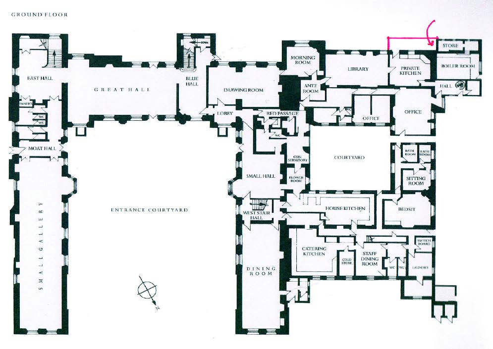 The floorplan of sutton place. Red arrow marks the area where the bust was discovered.