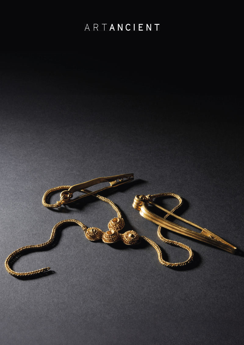 Surpassing even the British Museum’s Winchester Hoard in technique, design and configuration, the present Iron Age gold brooches are an exquisite and unparalleled example of gold-working from late Iron Age Britain. On account of their opulence and extremely high gold content, they were no doubt made for a member of the ruling elite. Preserved in exceptional condition, and exhibiting an outstanding and enigmatic example of ancient craftsmanship.